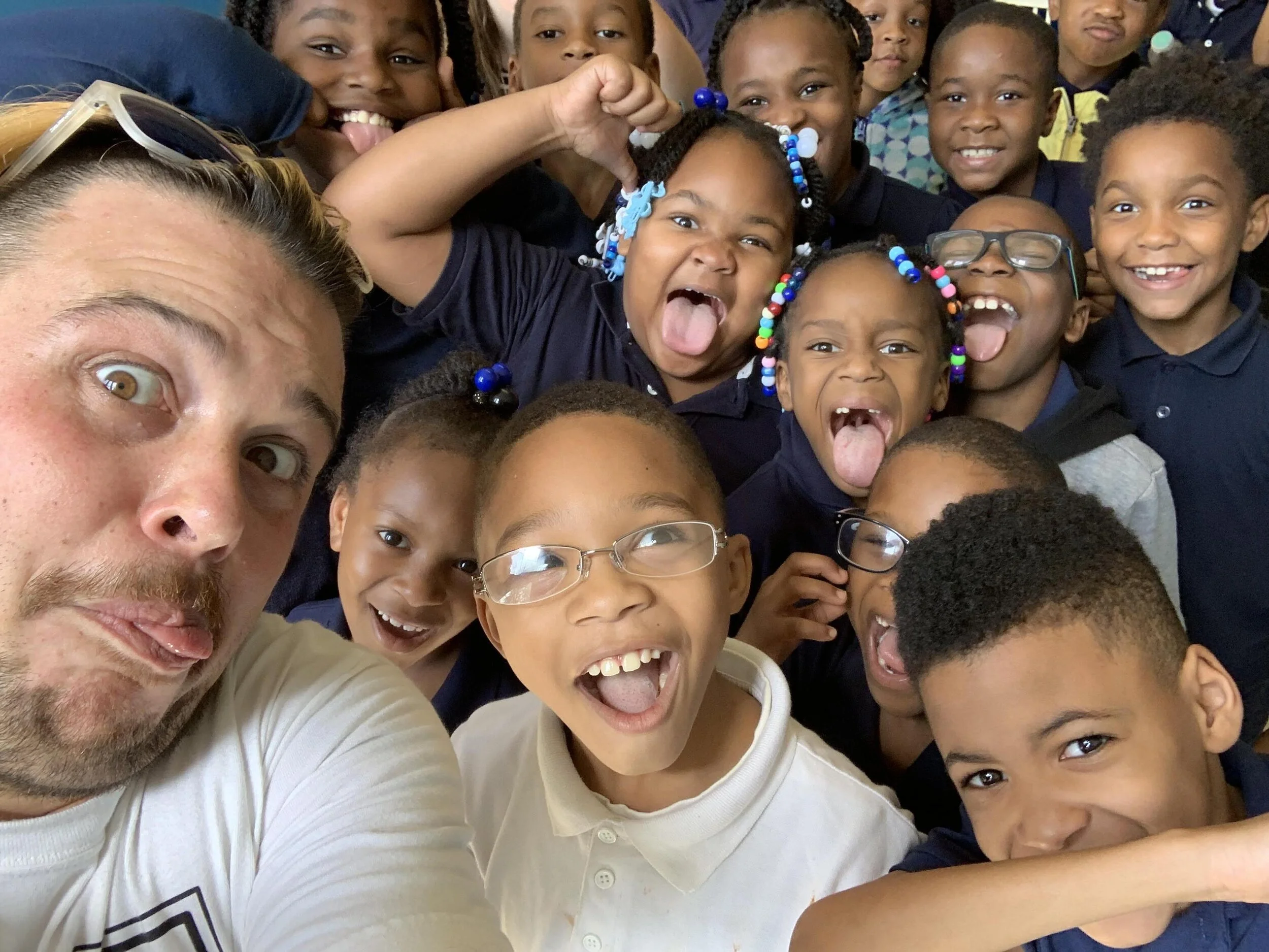 Me hanging out with kids at Oglesby Elementary on Chicago’s Southside as part of our Shared Walls Program that provides local public schools with ONE FREE YEAR of comprehensive arts programming - an art gallery for the school, a 88-page art curriculuum, and workshops by our artists, as well as tons of ongoing engagement and resources!